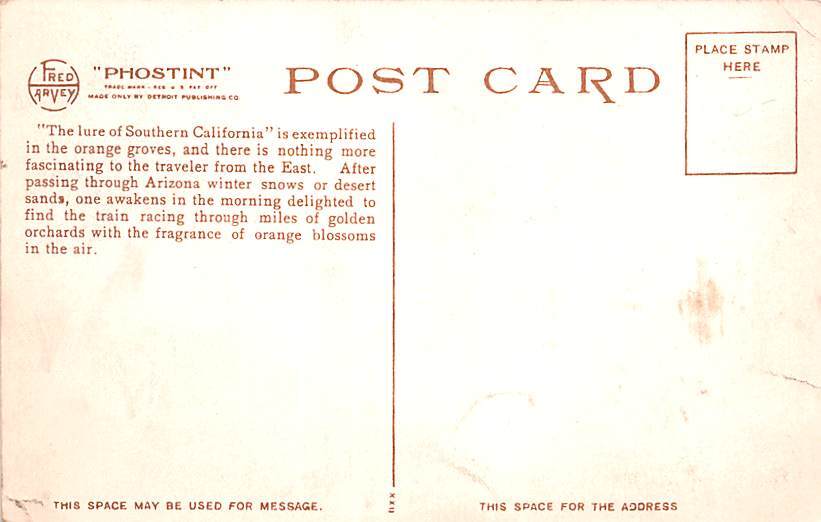 Santa Fe Train California, USA Postcard Unused, Grade: 4, , Size: Regular Size Postcard - approximately 3 1/2 inch x 5 1/2 inch (9 CM x 14 CM) Grading Scale: Grade 1 = Perfect corners Grade 2 = Very Minimal cor ... Read More