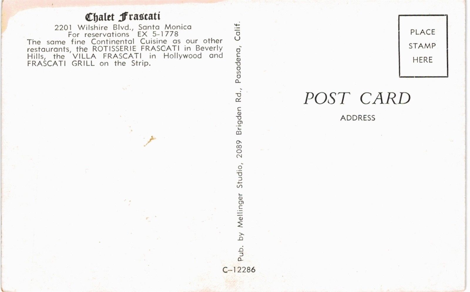 Santa Monica Chalet Frascati Restaurant Entrance Neon Sign 2201 Wilshire 1955 CA