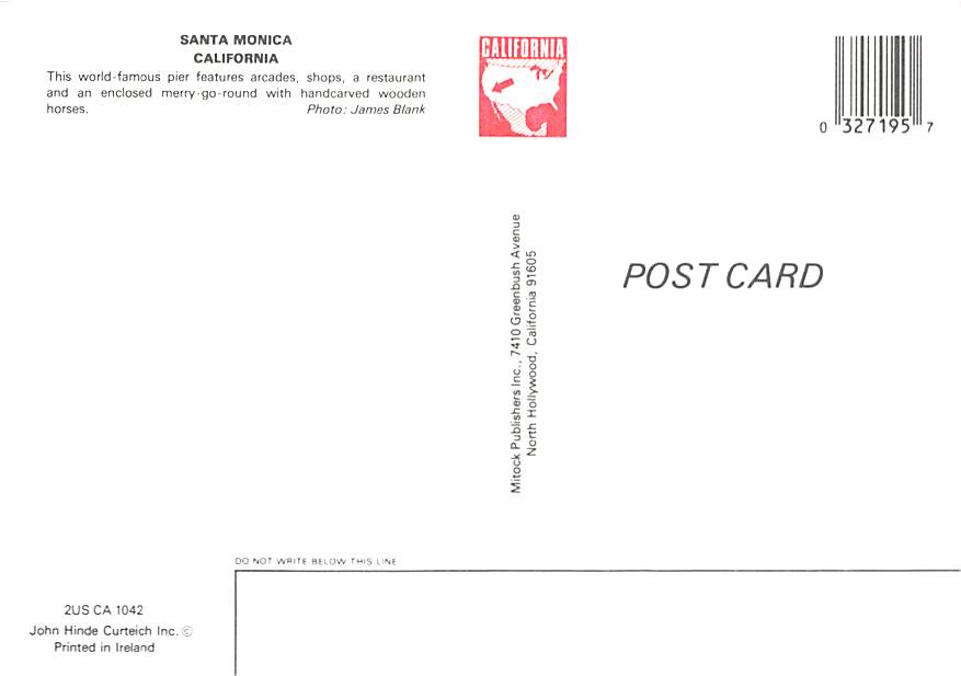 Santa Monica Pier - California Grade: 1 Category: Continental Size Postcard, Approx 4 in x 6 in (10 cm x 15.25 cm) Product Size: Continental size: 4X6 inches (10.5 cm x 15 cm) Grading Scale: Grade 1 = Perfect ... Read More
