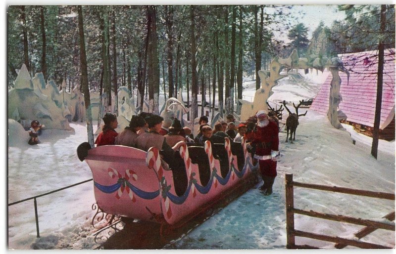 SANTA'S VILLAGE Skyforest CA Candy Cane Sleigh Christmas c1950s Vintage Postcard
