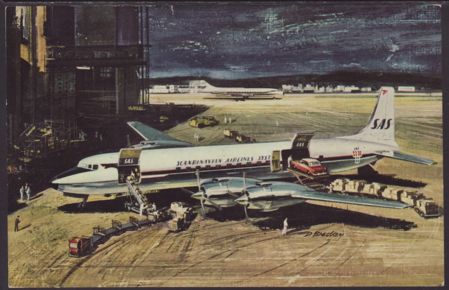 SAS Sky Frieghter DC-7F Postcard BIN