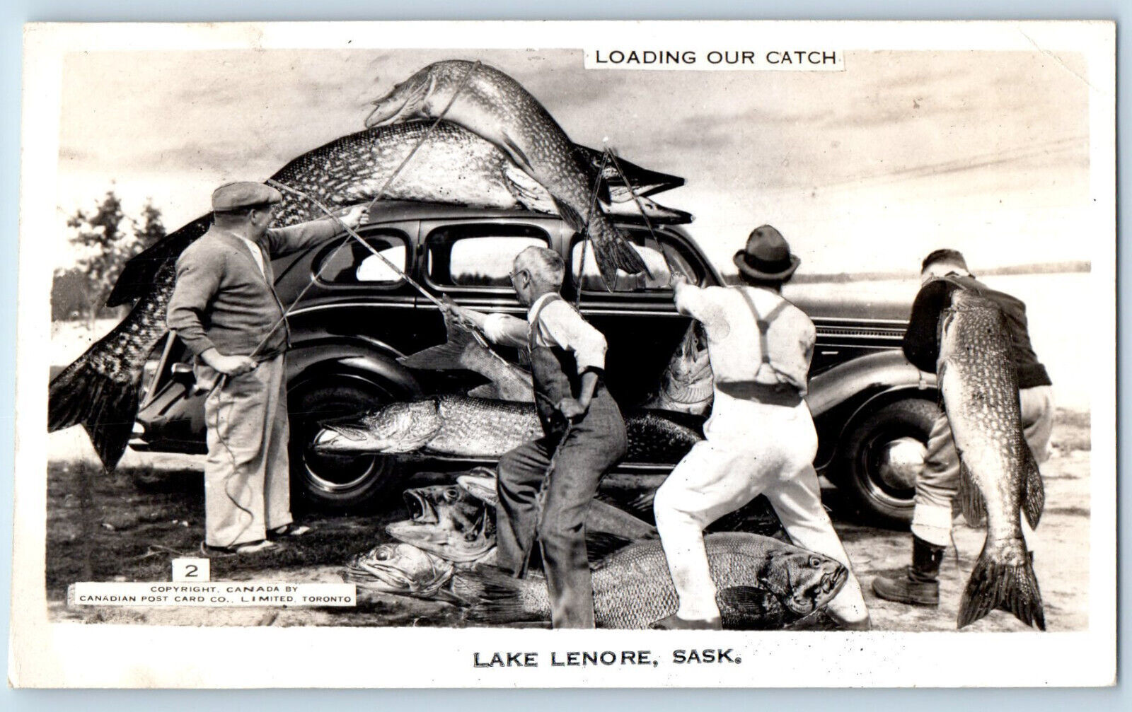 Saskatchewan Canada Postcard Lake Lenore Giant Fish c1930's RPPC Photo