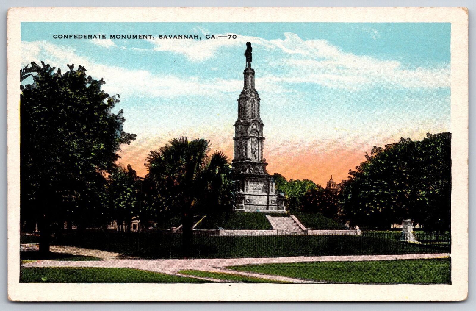 Savannah Georgia~Civil War Confederate Monument On Hill~1920s Postcard