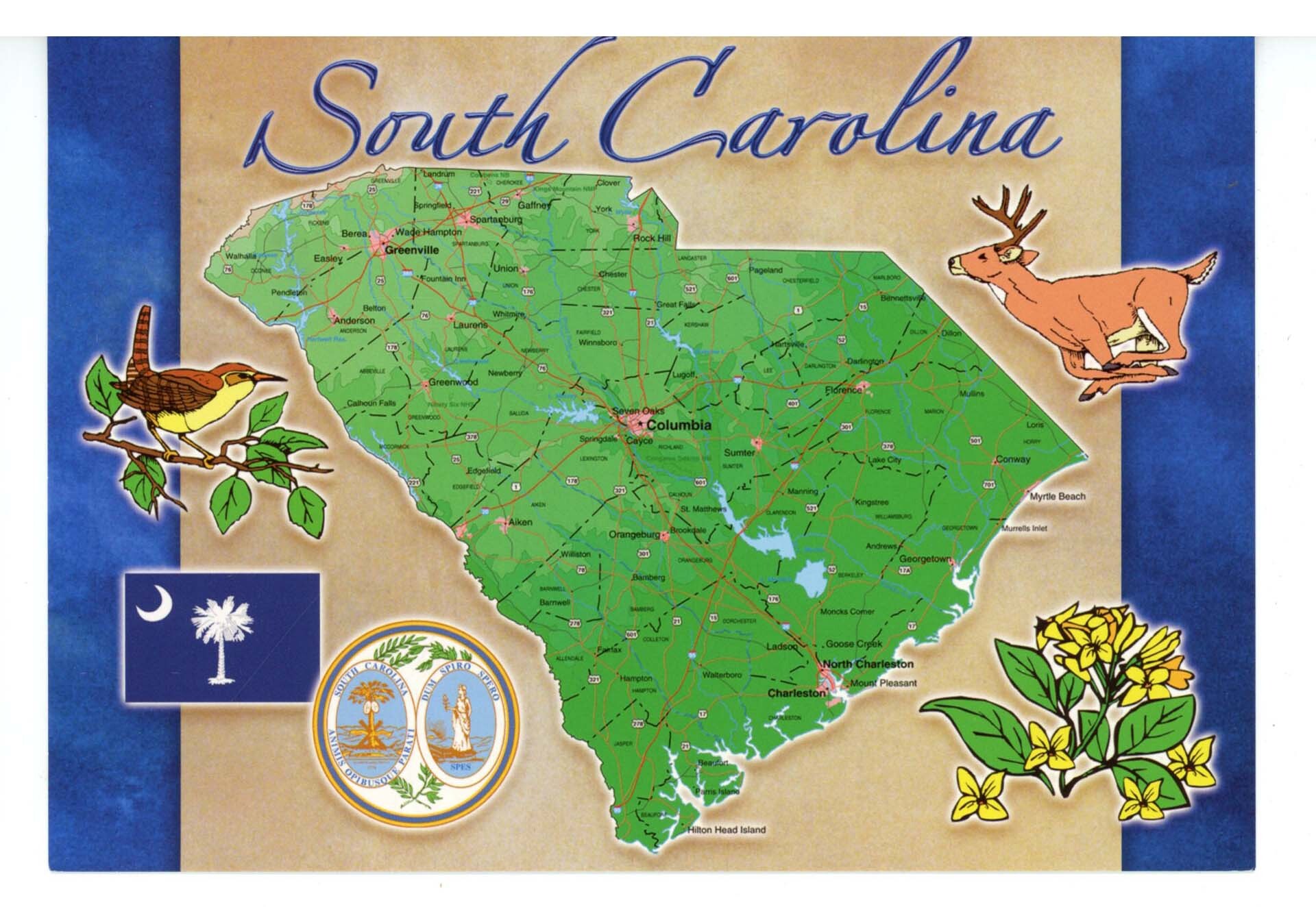 SC - South Carolina Map & Highlights (continental size)