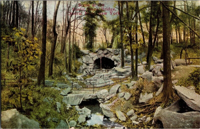 Scene at the Rustic Stone Bridge Central Park New York Vintage Postcard T02