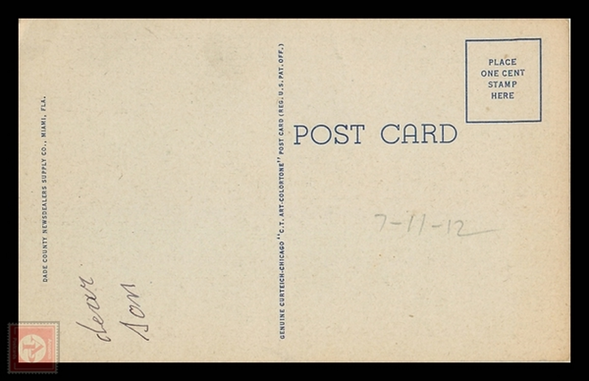 Some scans of postcards result in colored streaks which are a result of the error in scanning and not a fault of the postcard.