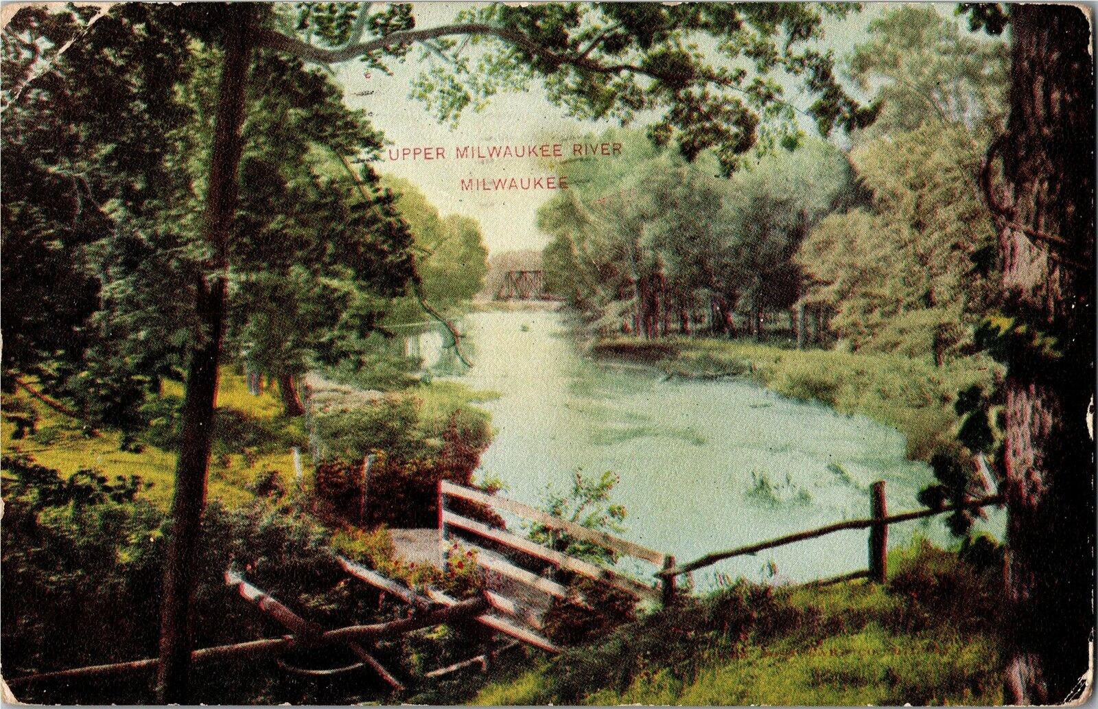 Scene on Upper Milwaukee River, Milwaukee WI c1910 Vintage Postcard P24