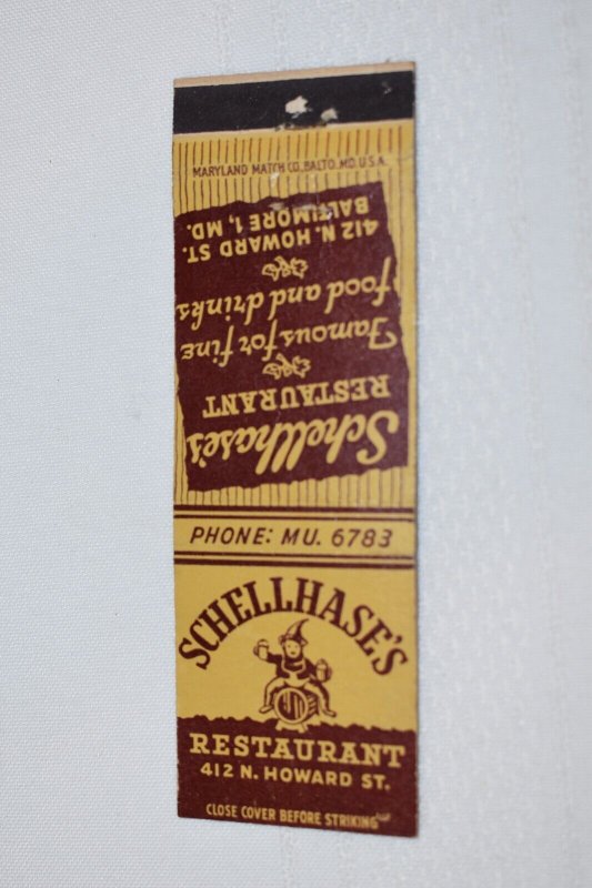 Schellhase's Restaurant Baltimore, Maryland 20 Front Strike Matchbook CoverPre-owned. As shown. See photos.Combined shipping and local pickup are available. See store for related items.
