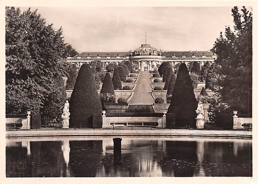 Schloss Sanssouci - printed photo Grade: 1 Category: Continental Size Postcard, Approx 4 in x 6 in (10 cm x 15.25 cm) Product Size: Continental size: 4X6 inches (10.5 cm x 15 cm) Grading Scale: Grade 1 = Perfe ... Read More