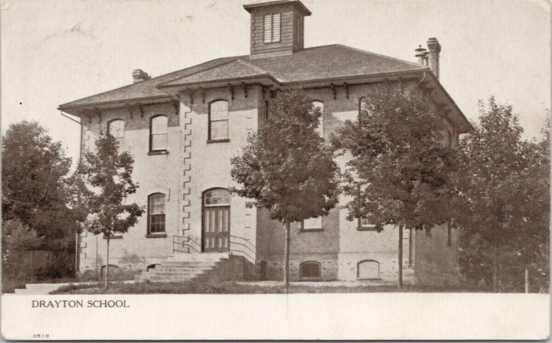 School Drayton Ontario ON c1907 Postcard F50