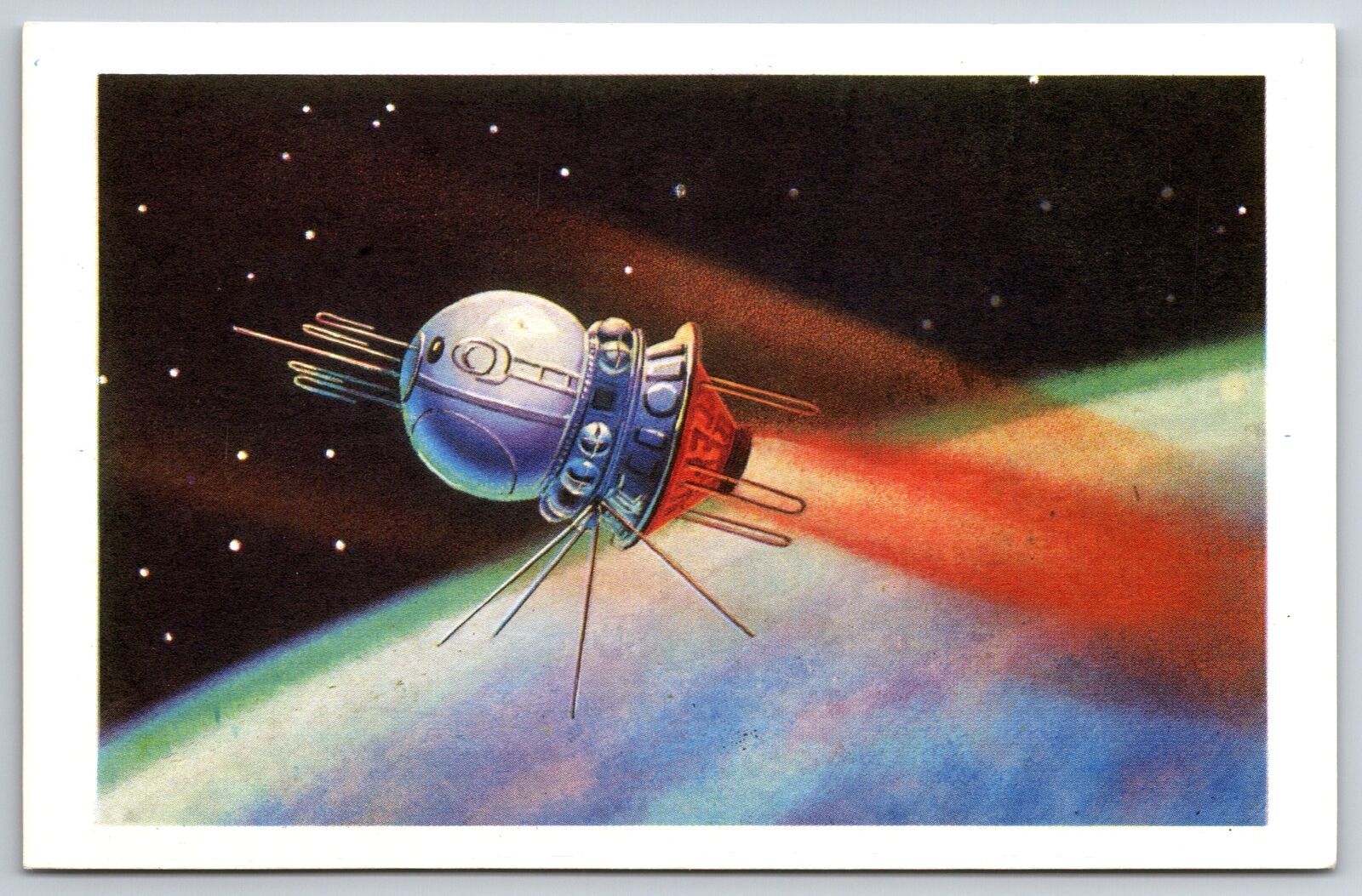 Science~Moscow Russia Space Program Art~Satellite "Returning"~1969 Postcard