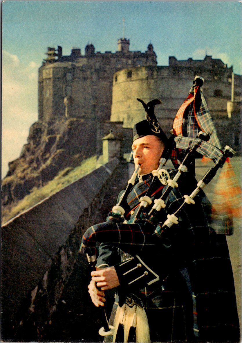 Scotland Edinburgh Castle and Bagpipe Player