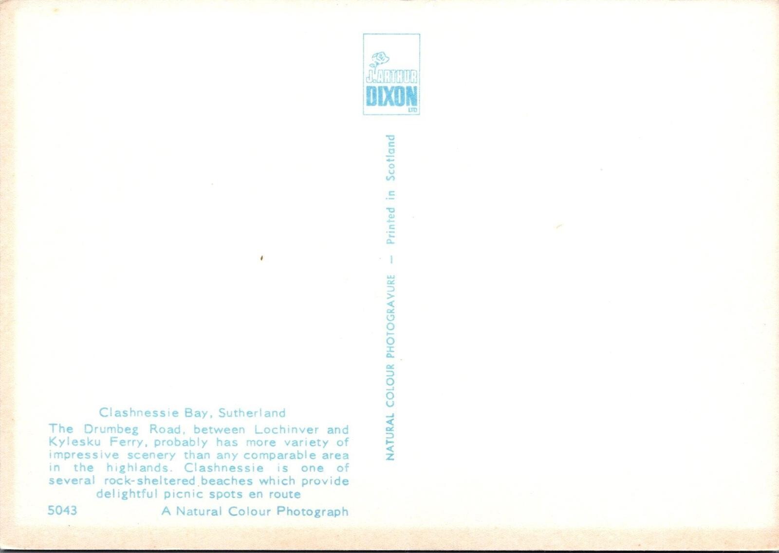 This is a Scotland Postcard - Clashnessie Bay, Sutherland SW15929 Publisher: J.Arthur Dixon Postcard size: Continental. Unused Postcard defect(s): Please also use the image magnifier to make your own assessment on t ... Read More