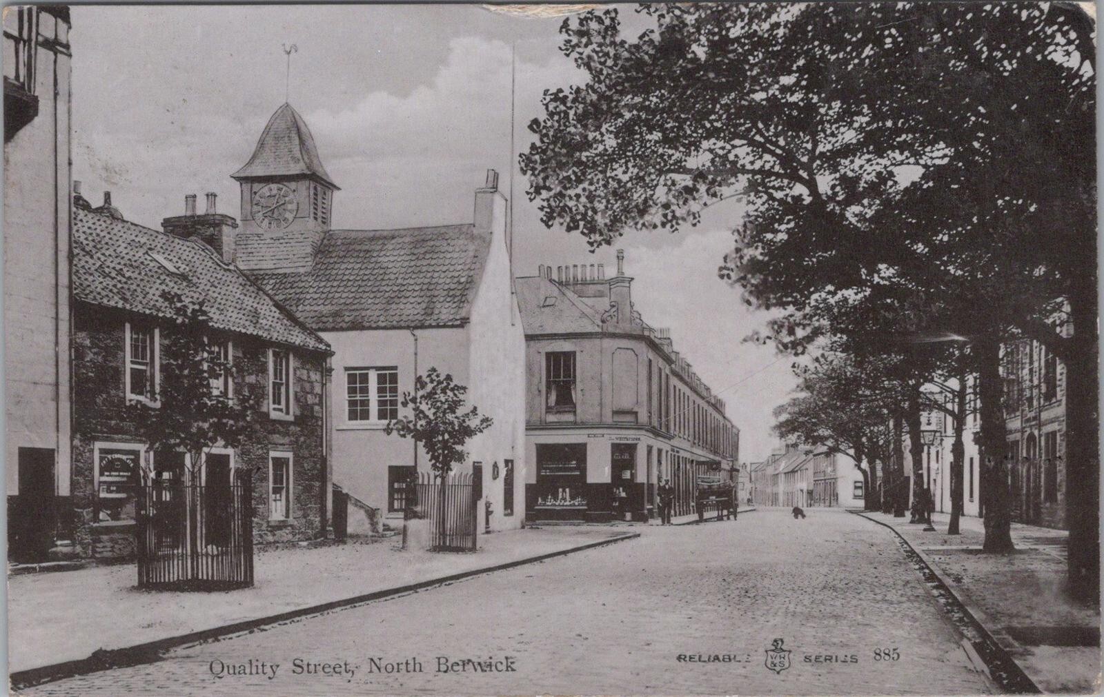 This is a Scotland Postcard - Quality Street, North Berwick XT162Publisher: W.R & S Reliable SeriesPostcard size: Standard. Posted in 1906 Postcard defect(s): Creasing to the centre of the top edge. Slight surface wearPlease also use the image magnifier to make your own assessment on the condition. Please ignore any lines caused by the scanner.When possible all of our postcards will be posted to you inside a collectable plastic postcard sleeve and a board backed envelope which will be marked 'Please do not bend'.Any 'Mo's Postcards' watermark does not appear on the actual postcard'.