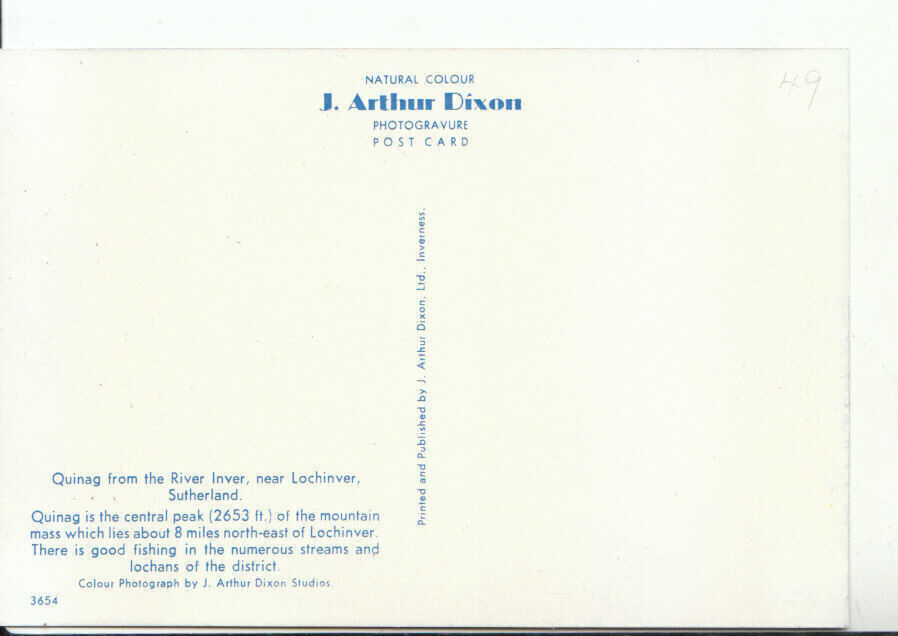 Mo's Postcards Postcard Description: Scotland Postcard - Quinag From River Inver - Near Lochinver - Sutherland Genealogy Information: Defects: Postage & Payment: For U.K residents the quoted P & P fee is for any number of postcards purchased at one time. Happy to quote for non UK residents. For multiple purchases please wait for an invoice Listing and template services provided by inkFrog