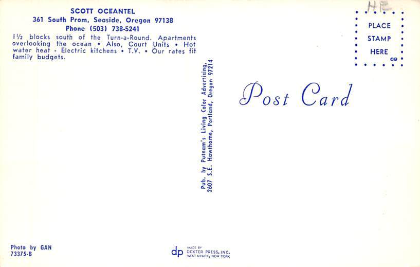 Scott Oceantel Seaside, Oregon OR Postcard - Unused