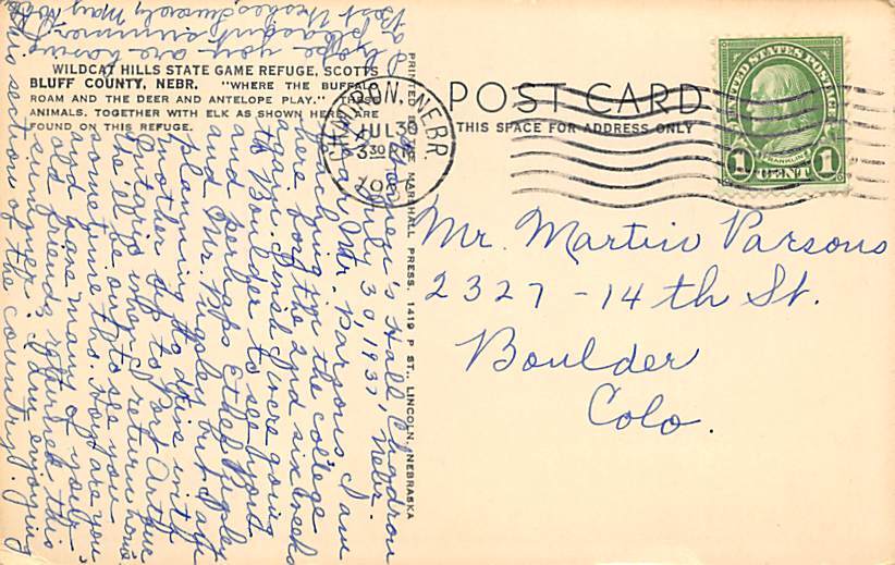 Scotts Bluff County Nebraska, USA 1937, Grade: 1, , Size: Regular Size Postcard - approximately 3 1/2 inch x 5 1/2 inch (9 CM x 14 CM) Grading Scale: Grade 1 = Perfect corners Grade 2 = Very Minimal corner wear ... Read More