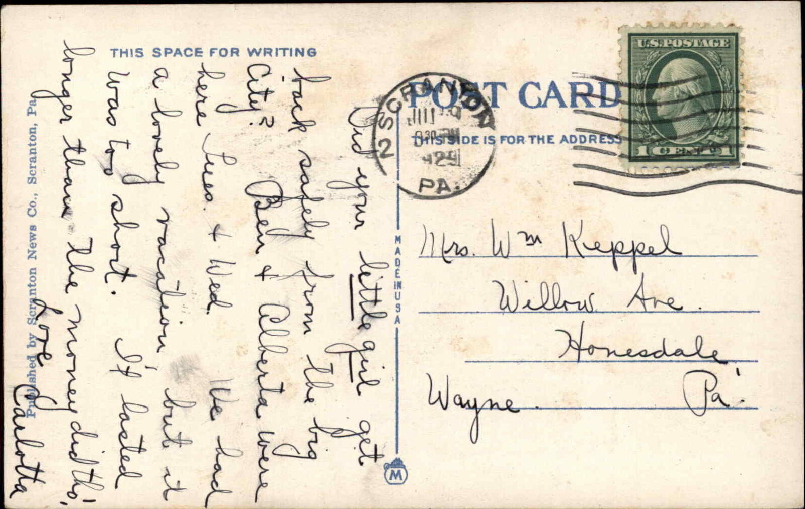 Scranton PA Elks club c1920 Postcard