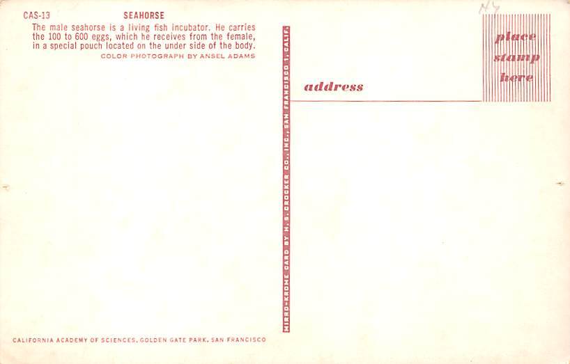 Sea Horses Fish Postcard Unused, Grade: 1, , Size: Regular Size Postcard - approximately 3 1/2 inch x 5 1/2 inch (9 CM x 14 CM) Grading Scale: Grade 1 = Perfect corners Grade 2 = Very Minimal corner wear, no cr ... Read More