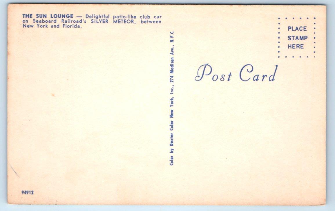 SEABOARD RAILROAD~ Sun Lounge on SILVER METEOR STREAMLINER TRAIN c1950s Postcard