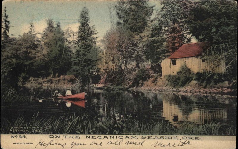 Seaside Oregon OR Canoe Hand Colored 1900s-10s Postcard