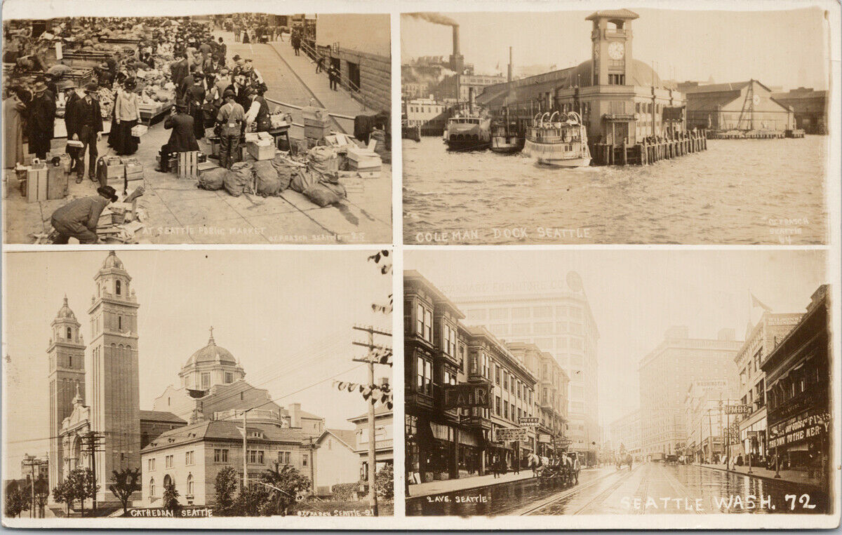 Seattle WA Multiview 2nd Ave Beattle Art Co. Otto Frasch RPPC Postcard E62