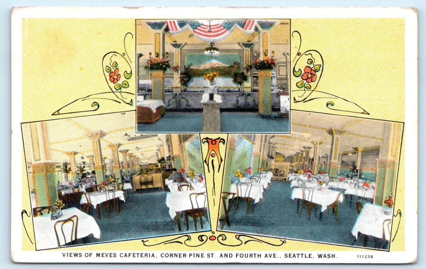 SEATTLE, WA Washington ~ Roadside MEVES CAFETERIA c1930s Multiview Postcard