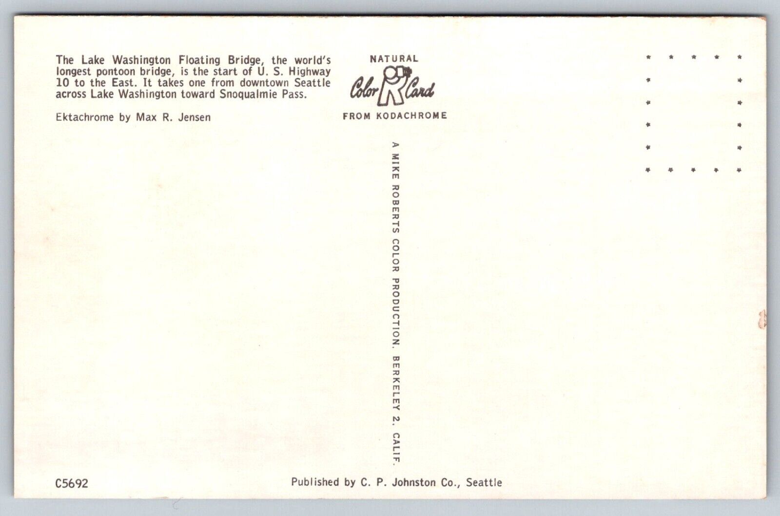 Seattle Washington Lake Washington Floating Bridge Postcard
