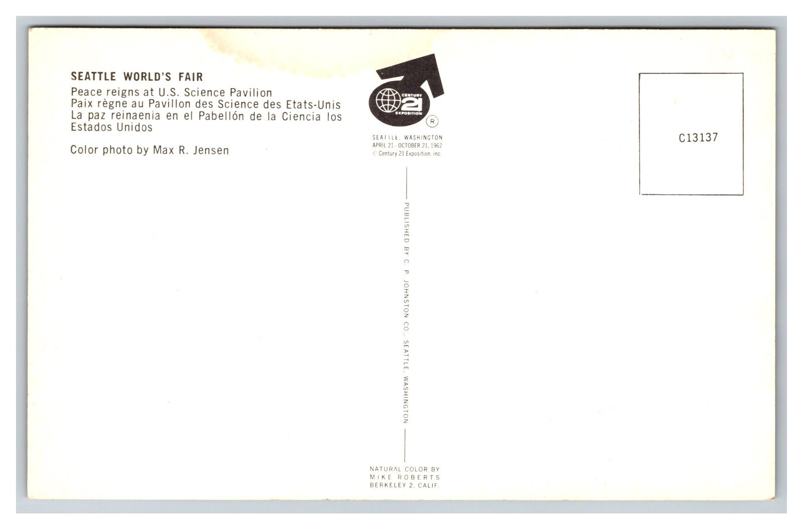 Condition: Unmailed, Showing Wear From Handling. Stained On The Back. Reasonable Offers Always Considered. The product is a standard-sized postcard featuring the U.S. Science Pavilion from the Seattle World's Fair ... Read More