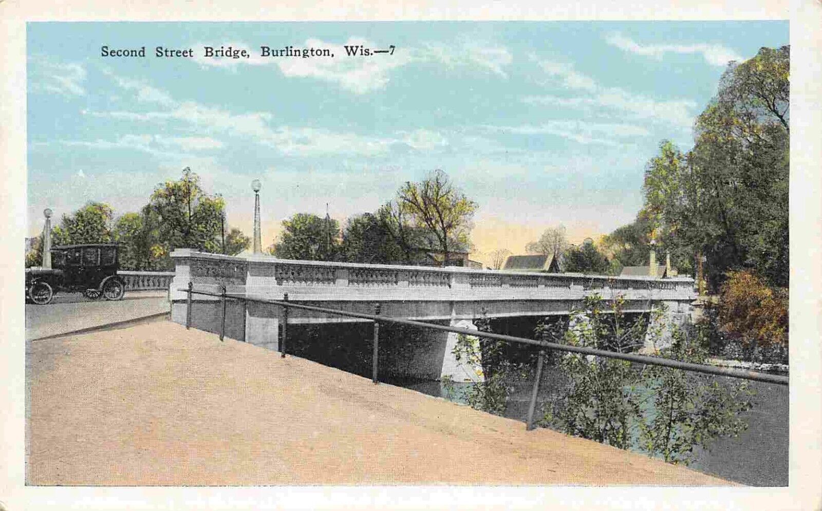 Second Street Bridge Burlington Wisconsin 1920s postcard