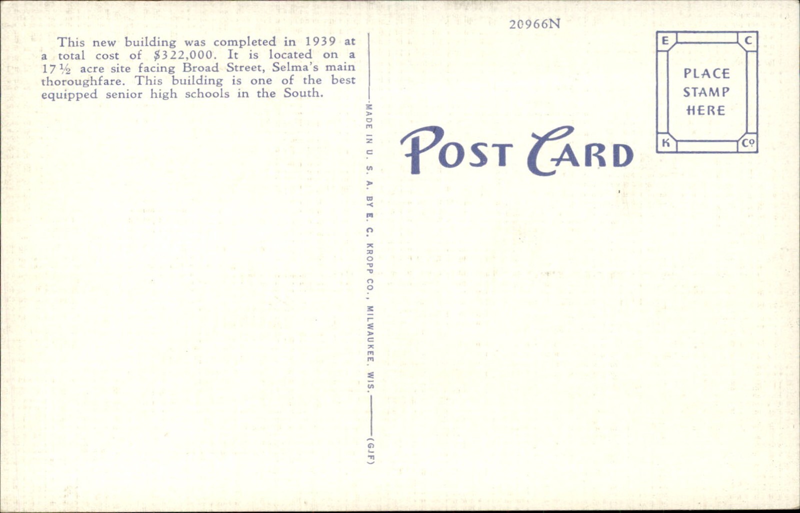Selma Alabama Albert Parrish High School c1930-50s Vintage Postcard