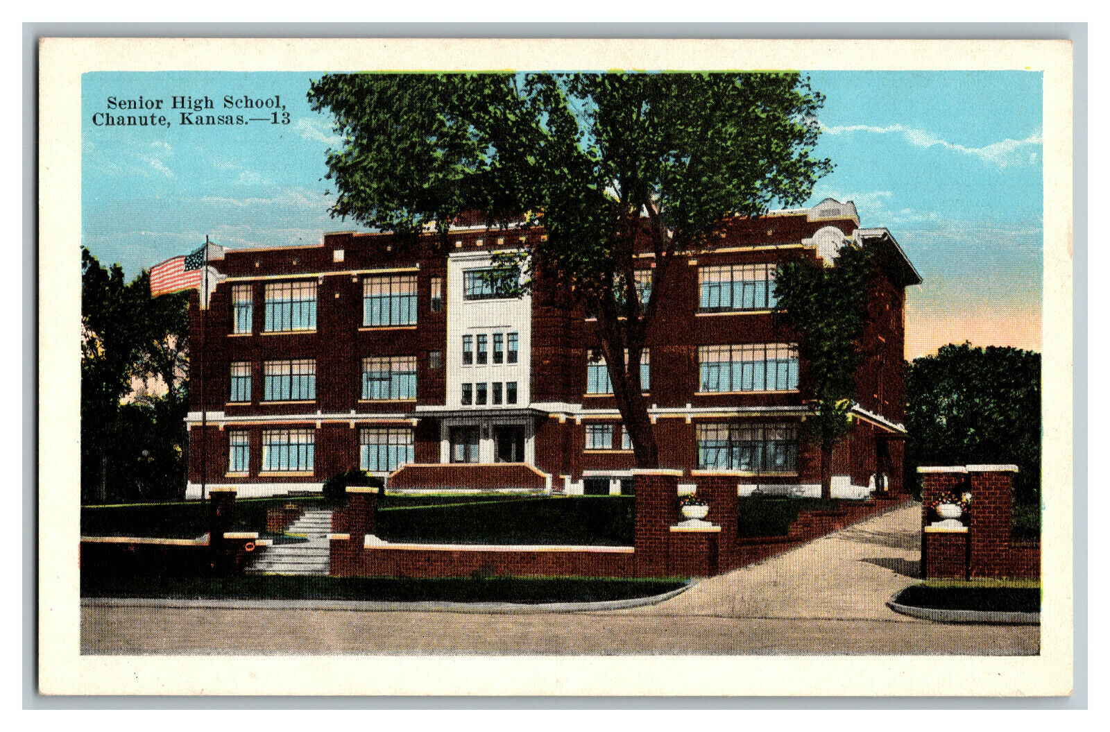 Condition: Unmailed, Showing Wear From Handling. Reasonable Offers Always Considered. This postcard features an image of the Senior High School in Chanute, Kansas. The picture is printed as a lithograph on standar ... Read More