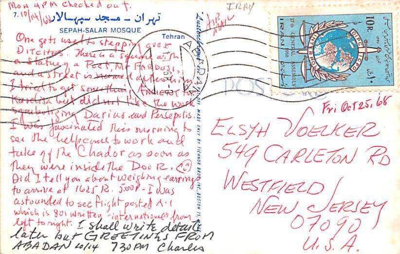 Sepah Salar Mosque Iran Postcard 1968, Grade: 1 Size: Regular size: Approx 3 1/2 X 5 1/2 inch (9 cm X 14 cm) Grading Scale: Grade 1 = Perfect corners Grade 2 = Very Minimal corner wear, no creases Grade 3 = So ... Read More