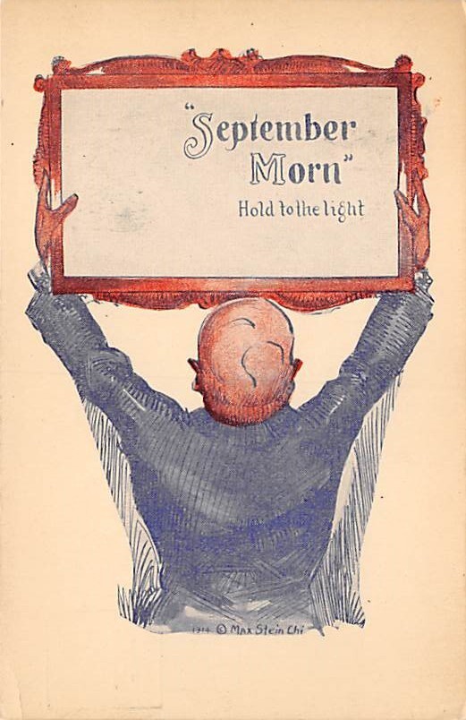 September Morn Hold to Light Postcard Unused, Grade: 4, , Size: Regular size: Approx 3 1/2 X 5 1/2 inch (9 cm X 14 cm) Grading Scale: Grade 1 = Perfect corners Grade 2 = Very Minimal corner wear, no creases Gr ... Read More
