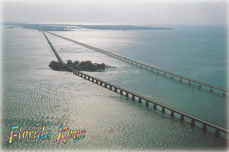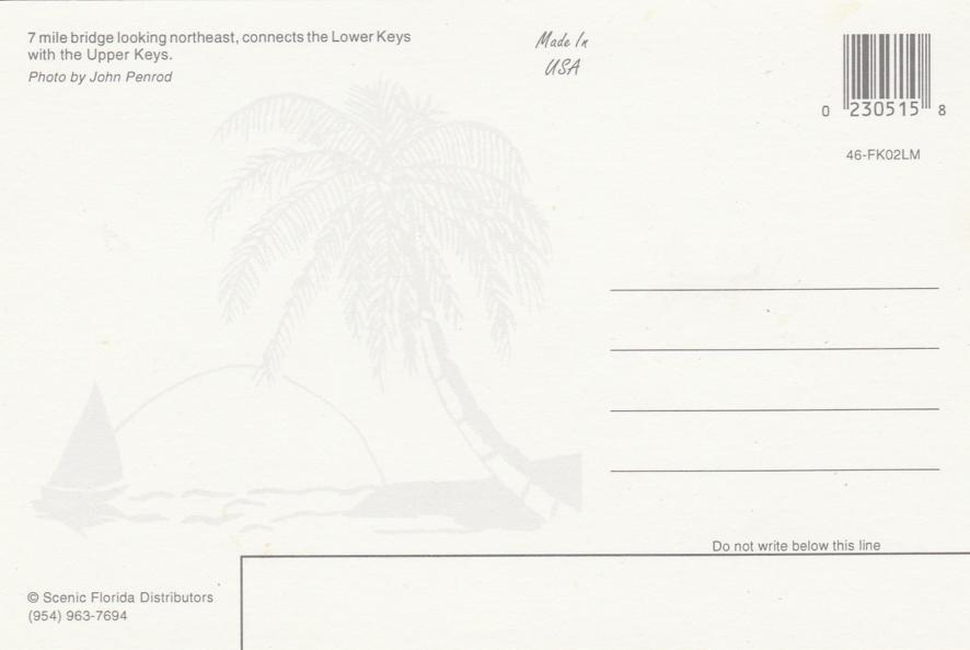 Seven Mile Bridge looking Northeast - Florida Keys.Continental sized chrome card.