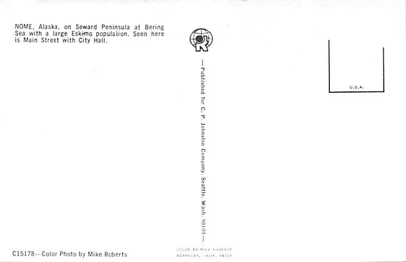 Seward Peninsula Nome, Alaska, USA Postcard - Unused Grade: 3 - stain on front, paper wear on back Size: R - Regular Size Postcard - approximately 3 1/2 inch x 5 1/2 inch (9 CM x 14 CM) Grading Scale: Grade 1 = ... Read More