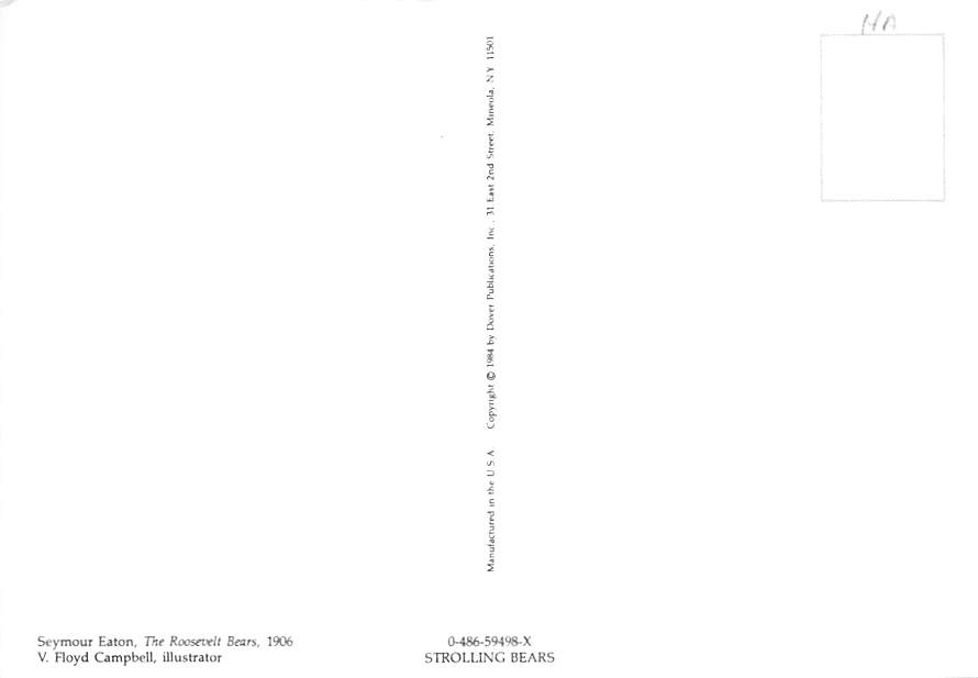 Seymour Eaton - Roosevelt Bears Grade: 1 Category: Modern Postcard, Continental Size, Approx 4 in x 6 in (10 cm x 15.25 cm) Product Size: Continental size: 4X6 inches (10.5 cm x 15 cm) Grading Scale: Grade 1 = ... Read More
