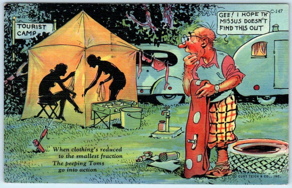 Shadow Comic RAY WALTERS - Risque Peeping Tom Tourist Court 1941 Postcard