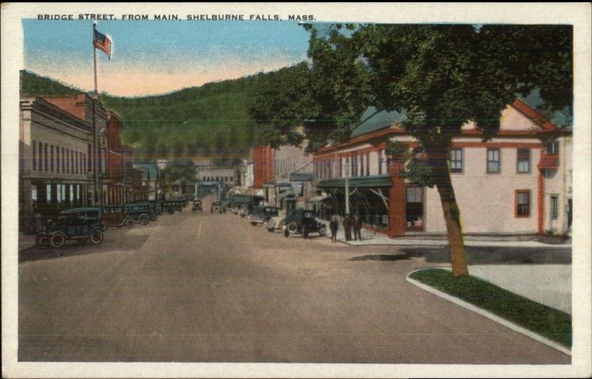 Shelburne Falls MA Bridge St. c1920 Postcard