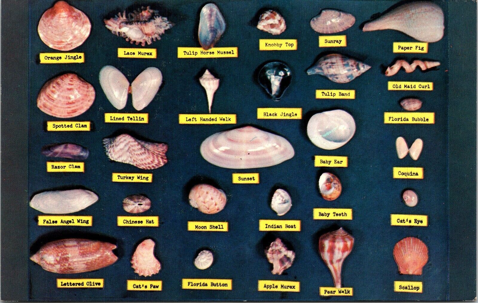 Shell Chart Found Waters Beaches Florida FL Postcard UNP VTG Tichnor Unused