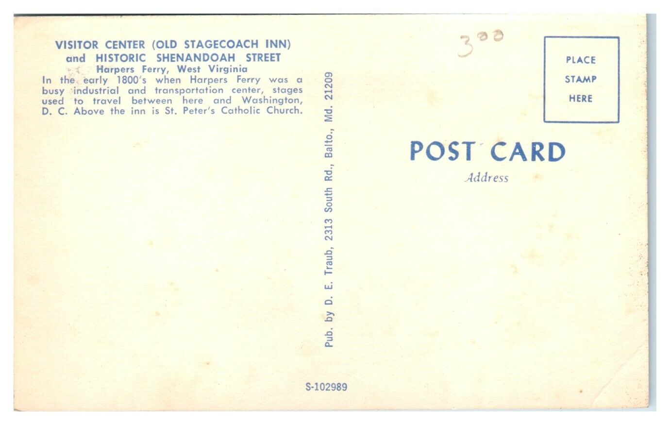 I have for sale one Shenandoah Street, Harpers Ferry, WV Postcard *5F2. Consider using the Hip Photo Magnifier (the zoom feature) to examine both photos- front and back, for condition and details. At times, the back photo will reveal nicks or creases that are not visible from the front. Message me if you have any specific questions about a postcard.Buy as many postcards as you want and pay only $0.95 for shipping. International rates, duties, and taxes vary. Returns accepted. All orders ship as United States Post Office (USPS) First Class Mail in a white, light cardstock envelope/mailer. The USPS typically delivers First Class Mail within 3-5 business days, but occasionally takes a little longer. Thank you for your business! 5F2