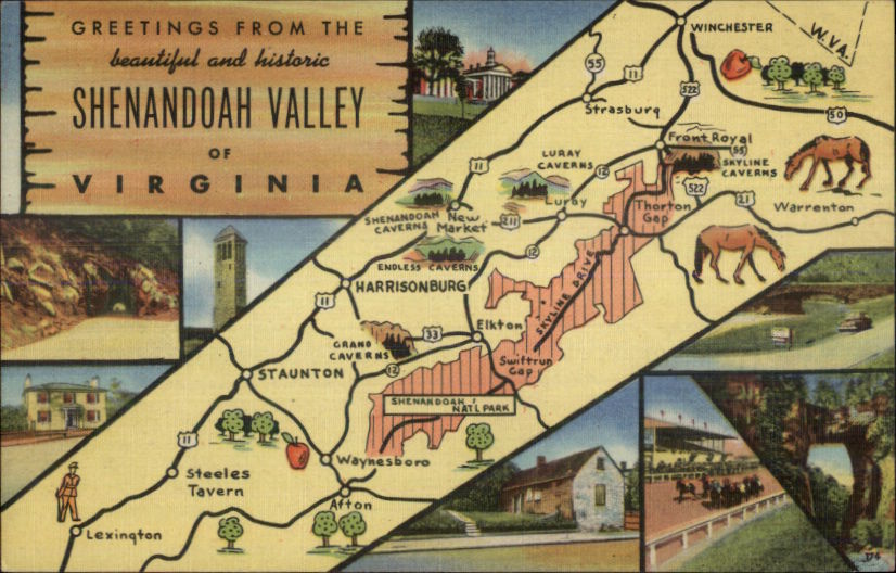 Shenandoah Valley VA Map NICE LINEN Postcard