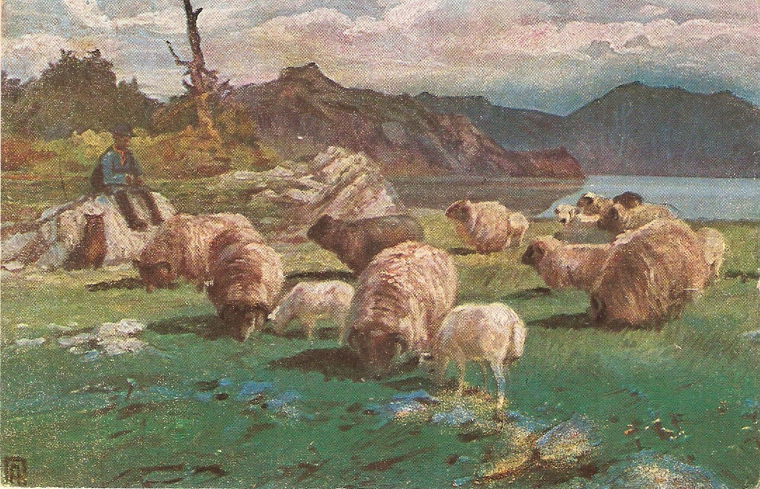 "shepherd with his flock" nice old vintage postcardPublisher: J. S. & CO. M. NO. 650