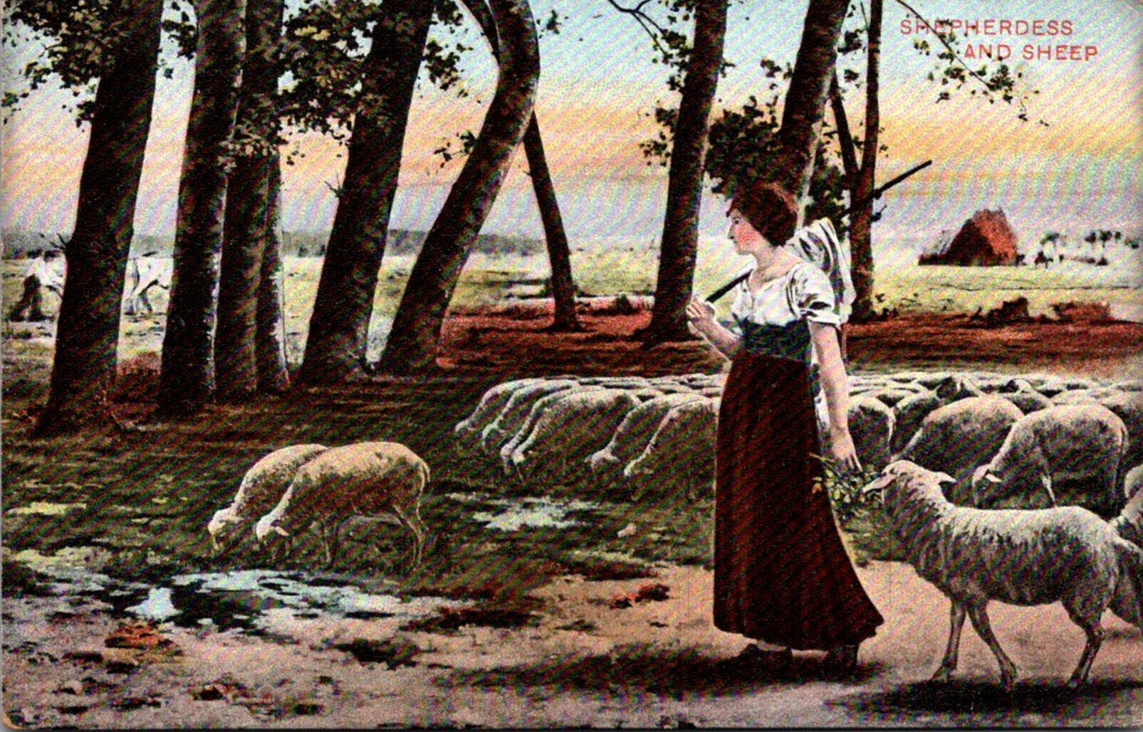 Shepherdess and Flock Of Sheep