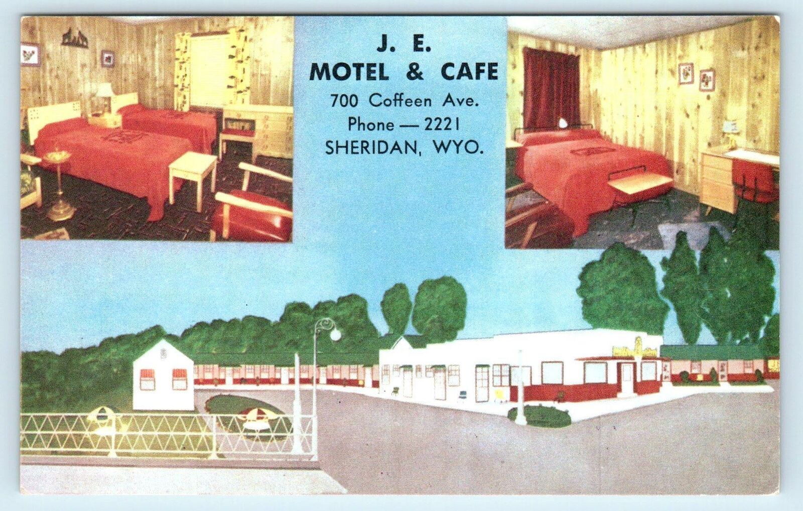 SHERIDAN, WY Wyoming J E MOTEL & CAFE c1940s Roadside Postcard