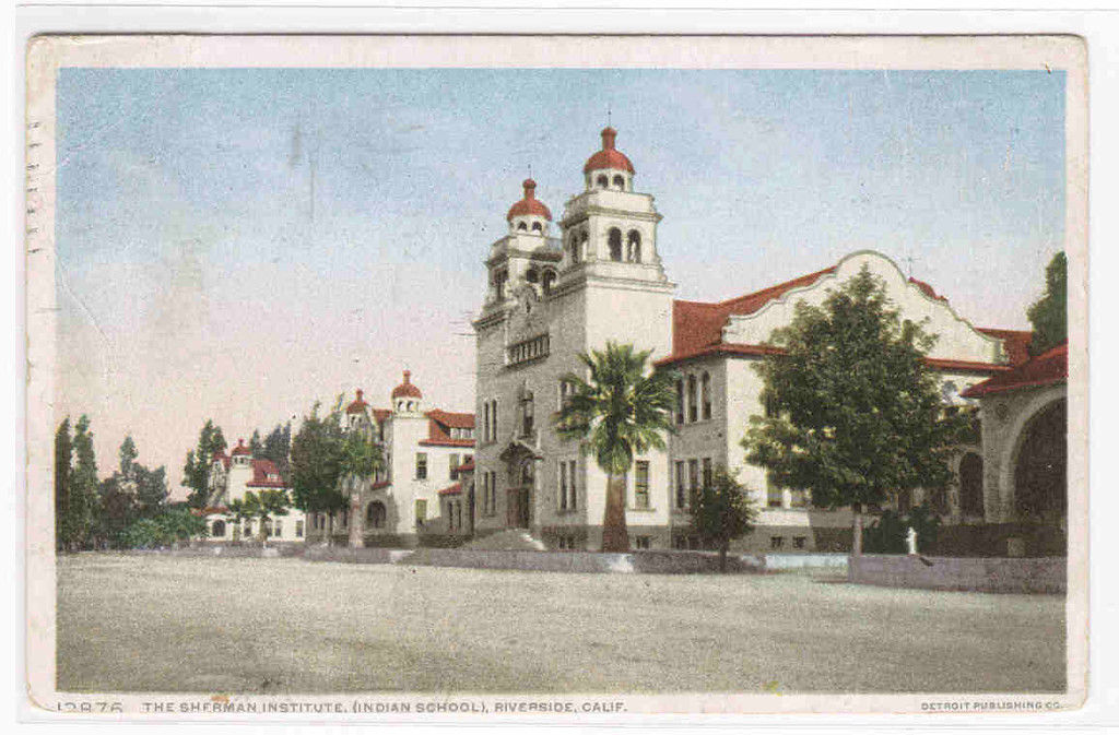 Description: Sherman Indian School Riverside CA Phostint postcard Type: divided back Condition: very good+, light corner wear Any hatched effect on pic is scanner effect, not on postcard. Postal use: unused, unposte ... Read More
