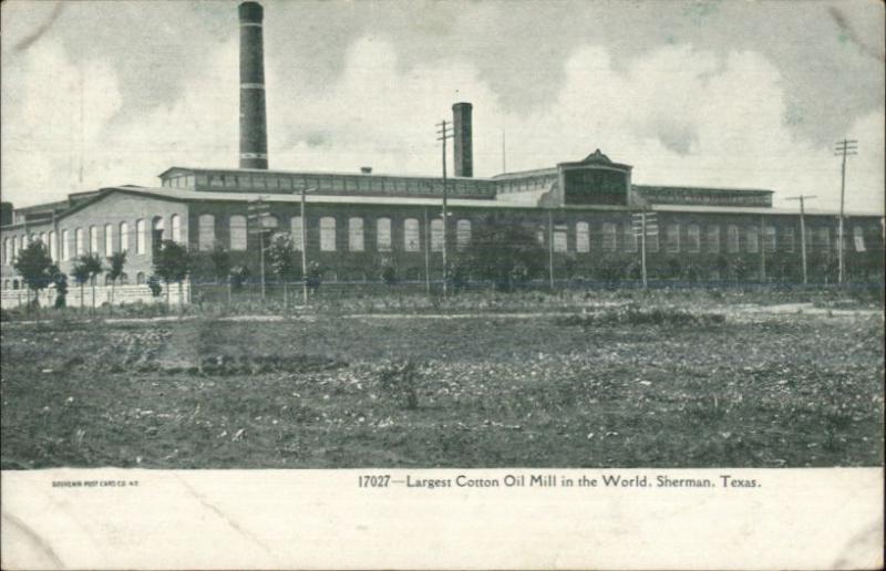 Sherman TX Cotton Oil Mill Largest in World c1910 Postcard