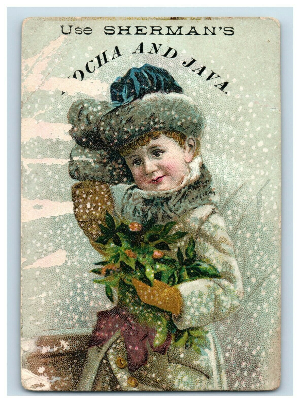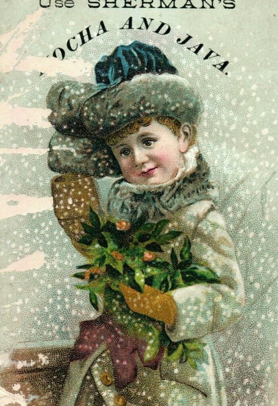 Sherman's Mocha & Java Christmas Scene Child in Fancy Coat & Hat in Snow P49
