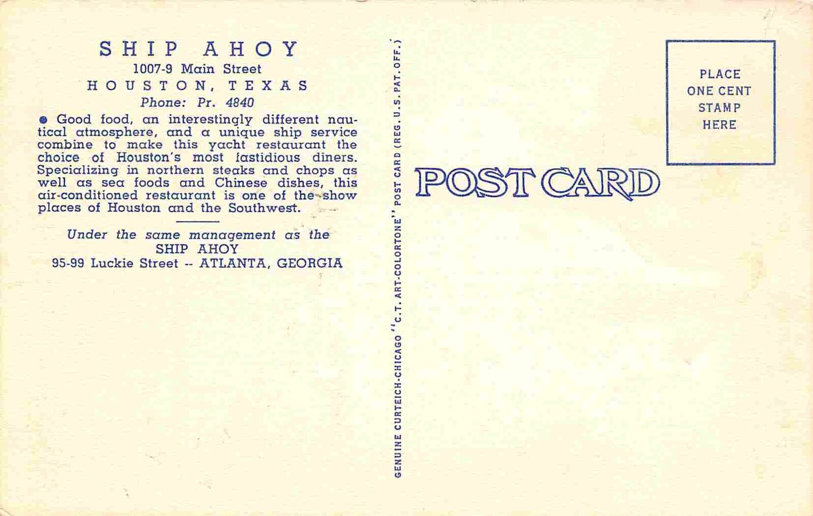 Ship Ahoy Restaurant Interior Houston Texas linen postcard