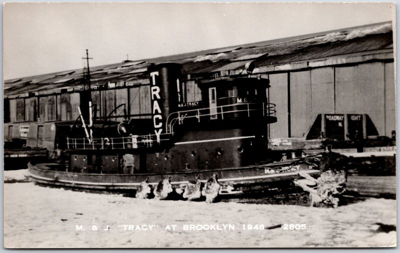 Ship M & T Tracy at Brooklyn 1948 Steamship Historical Society Postcard